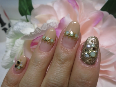 ベージュと、グリーン系のストーン合わせは、私の大好きな組み合わせ