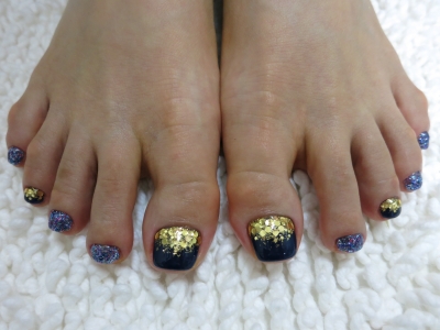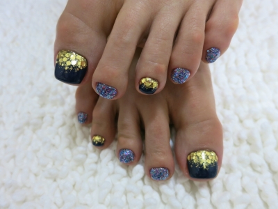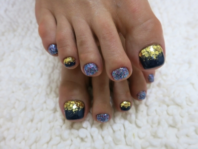 本日は、ネイビーカラーをメインに、人気のMIXラメを使用しました