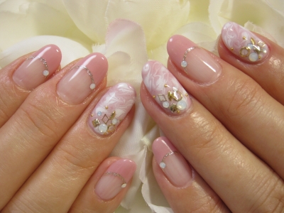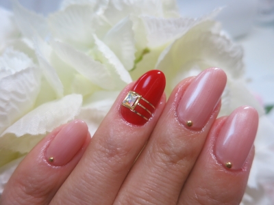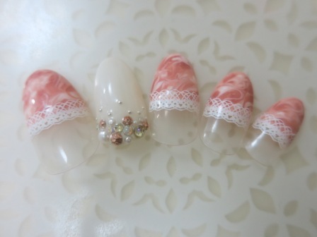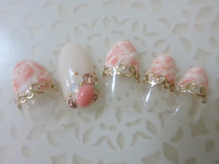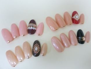 ポイントは秋風味なので、アンティーク調にダークブラウンのストーン使いが決めてです