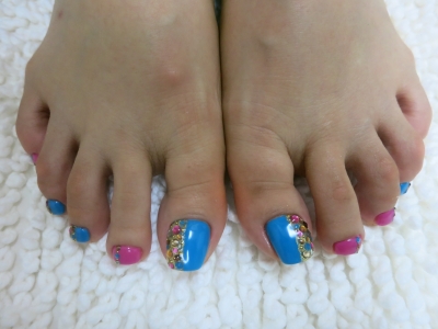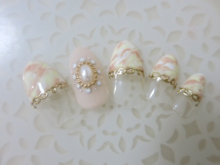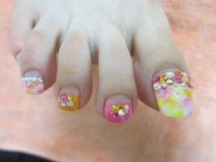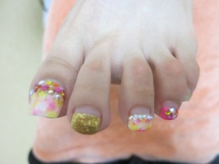 本日は、秋を意識しつつのオリエンタルなペディキュアにされました