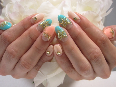 お洒落な大人のサマーネイルって感じで、私好みデス