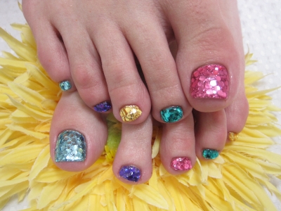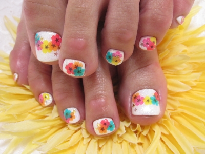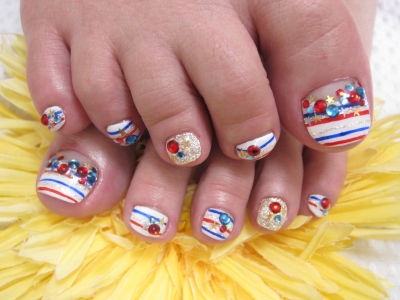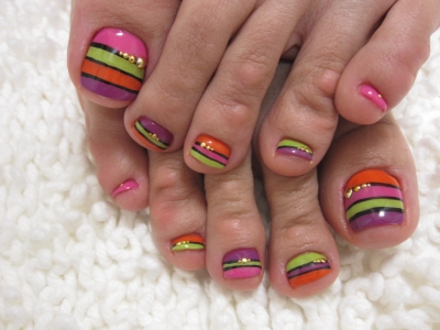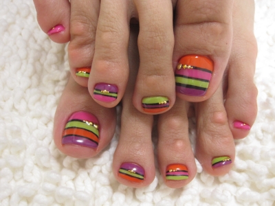 4カラー・ボーダーペディキュア(^◇^)