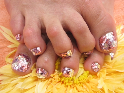 本日のペディキュアは、明るいけれど深みのあるシックなカラー4色を使用した