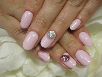 シンプルなミルクピンクの単色塗りに、ブイカットストーンをゴロッとのせました