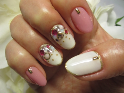 今回は、ゴールド&ホワイト&ピンクの3色使い中心で柔らかくまとめました