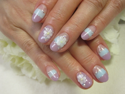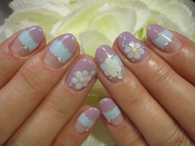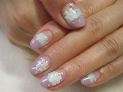 本日のネイルは、ダブルフレンチに3Dのコスモスのお花をオン