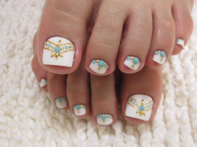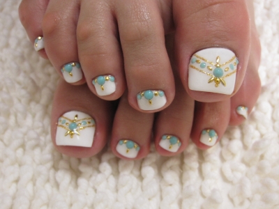 ホワイトベースに、ターコイズ&ゴールドカラーで大人シックにまとめました