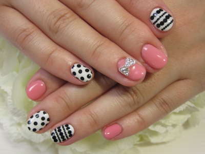 本日のネイルは、丸ホログラムを応用したドットとボーダーが印象的なデザインで