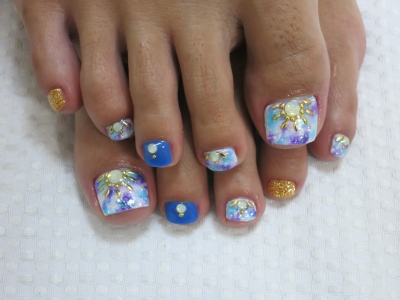 ブルー系タイダイ*ペディキュア(#^.^#)