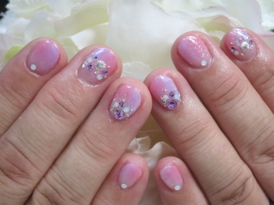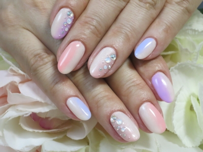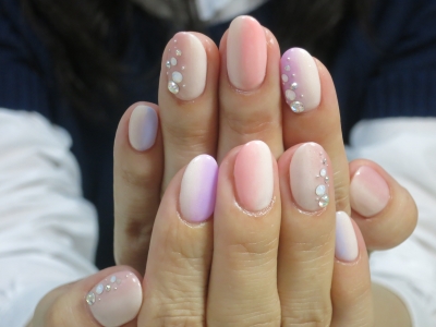 本日のネイルは、ピンク&ラベンダーカラーで、先端のみ縦グラデーションしました