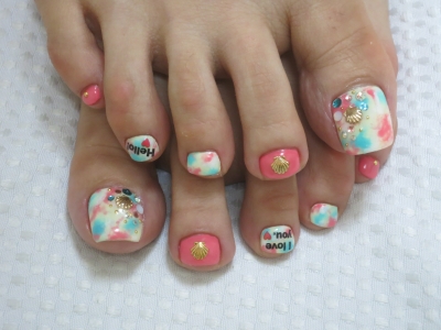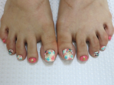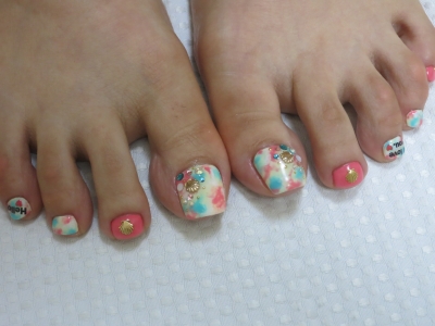 人気のサマータイダイ*ペディキュア(●^o^●)