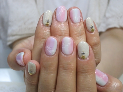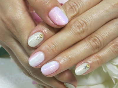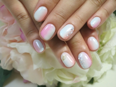 ハンドは、ふんわりなイメージが人気の縦グラデーションネイル