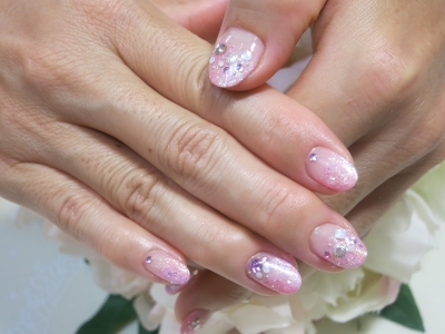 逆フレンチのライン部分も、キラキラストーン仕上げでゴージャスに仕上がりました