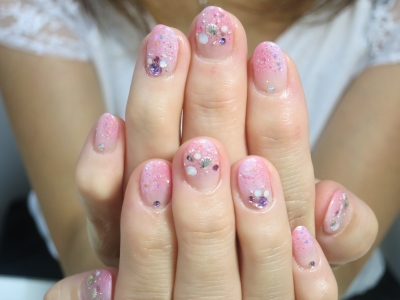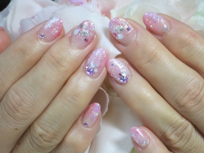 パステル3色のホログラム(大小)を先端に施し、ラメもプラスしてあります