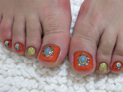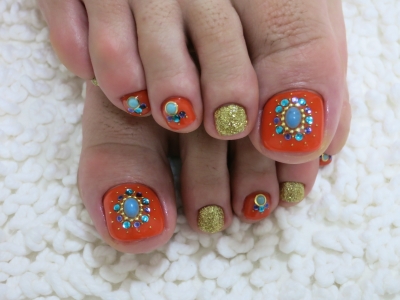ターコイズ×オレンジ*ペディキュア(●^o^●)