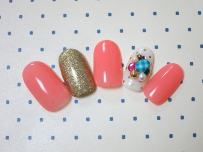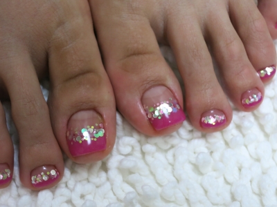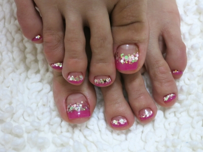夏ビジューペディキュアは、派手めが人の目を惹きつけますね