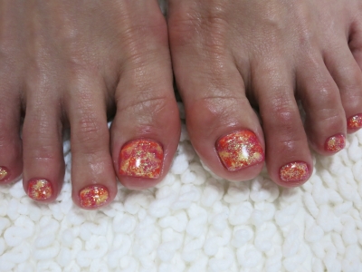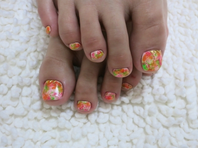 ペディキュアジェルは、黄色・オレンジ・ピンクを使用した