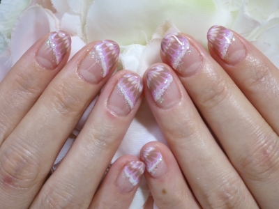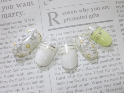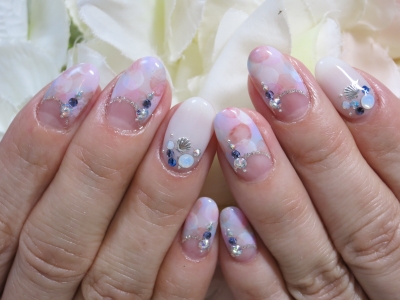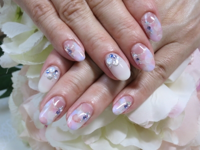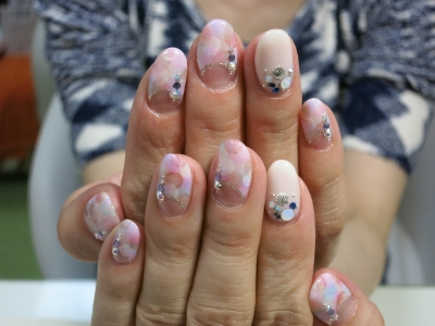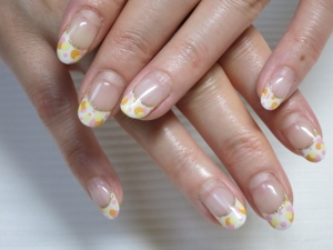 逆フレンチに、ふんわりシャボンのような柄アートを施しました