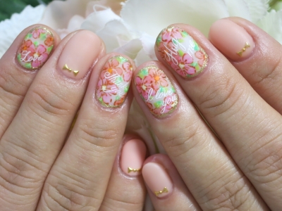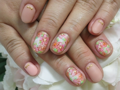 優しい雰囲気に仕上げたいので、マットトップジェルを使用して