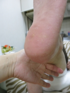 私はお医者様じゃないので、かかとのひび割れは治せません。