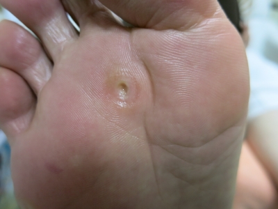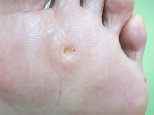 魚の目の芯を取ったので、陥没していますが定期的に軟化させて除去して