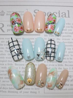 春を盛り沢山に感じるネイルになりました