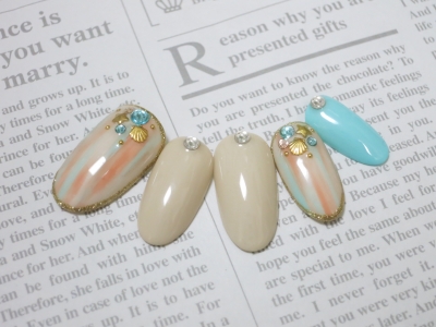 【全面塗り・メインアート2本・他ストーン8粒】