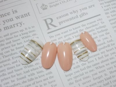 ラメ囲みではなく、ホワイトカラーの囲みも新鮮で、ネイルがまろやかになりますね