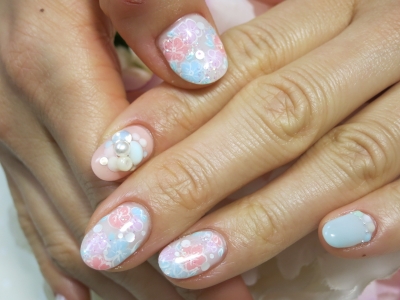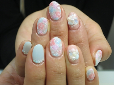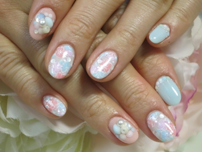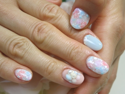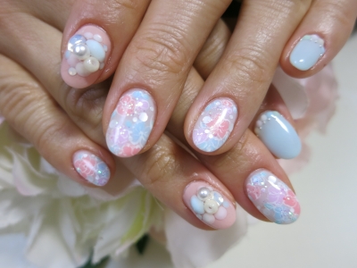 パステルなので、派手過ぎず女性らしくて可愛いネイルに仕上がりました