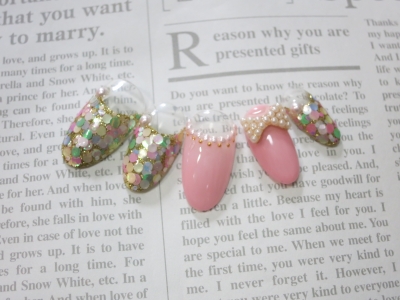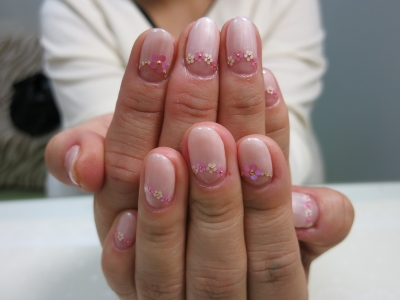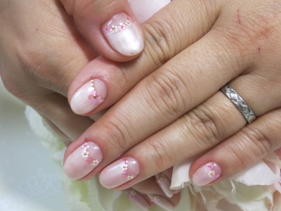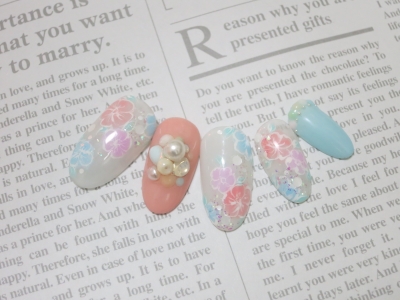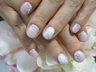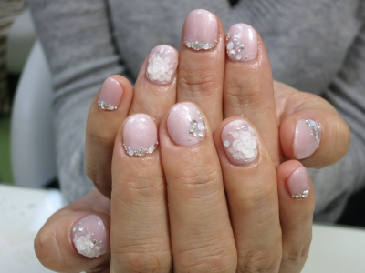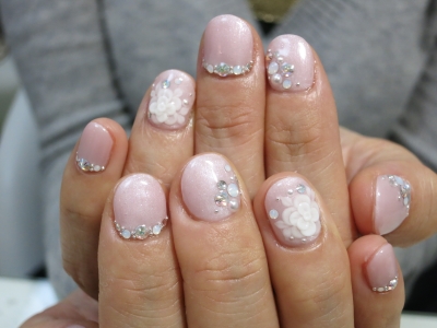 淡いピンクベースに、ホワイト3D花をあしらいました