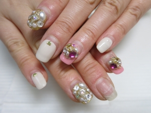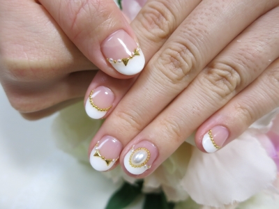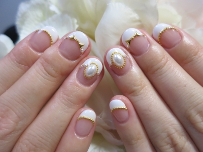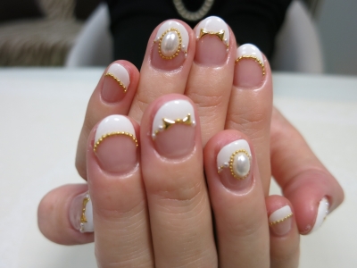 薬指には、大きめのパールの指輪を付けた感覚でアートしました