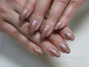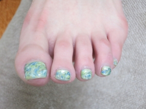 透明セロファン状のホログラム3色使用して、爪先キラキラさせました。