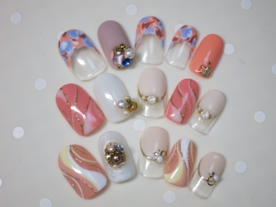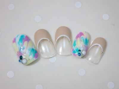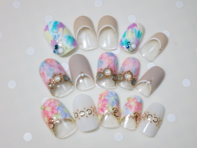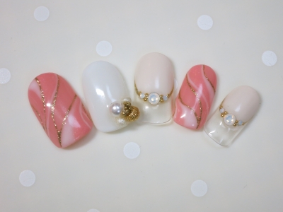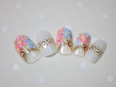 なんとな?くフラワーな感じが、優しい春ネイルを演出しています。