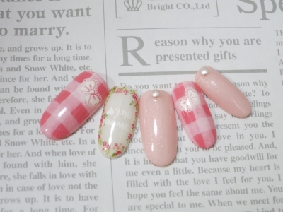 たらしこみフラワーネイルを、ピンク系で柔らかく入れました。