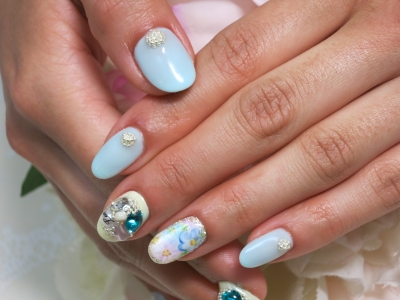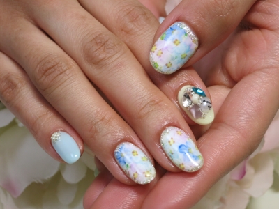 パステル*手描きフラワーネイル