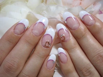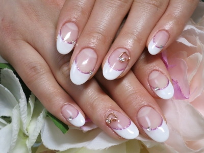 シンプルなフレンチネイルに、ピンクラメラインを。