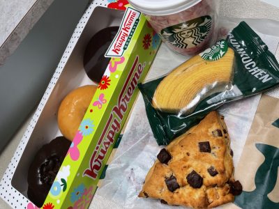 スタバ・カプチーノやら、スコーン、バームクーヘン、クリスピークリームドーナツと贅沢三昧♡♡♡ 最高デス!