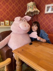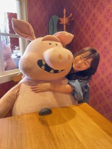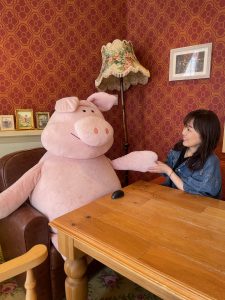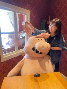 個室も可愛かったですぅ~♬ ぶたさん1匹で寂しそうだったから記念撮影にGO!