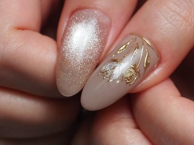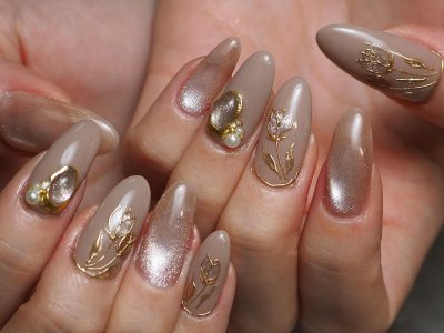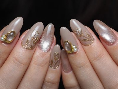ロゴシールなども抜いて、シックなチューリップネイルとなりました。