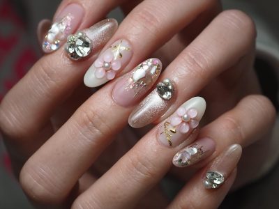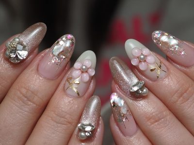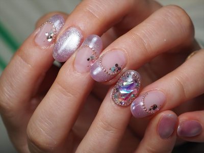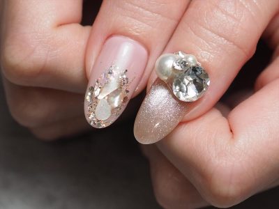 本日はオーロラビジューを全面に敷き詰めたキラキラがポイントのデザインにされました。