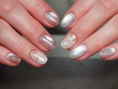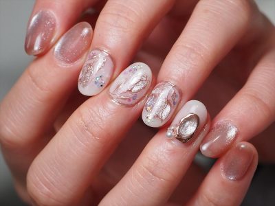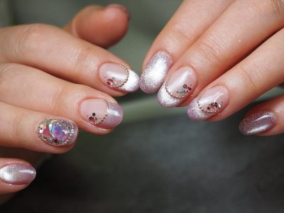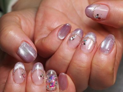 オーロラビジューがポイント★マグネットフレンチネイル