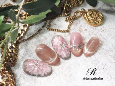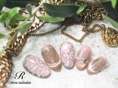 ベージュ系マグネットジェルで品よくまとめました。