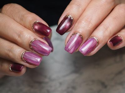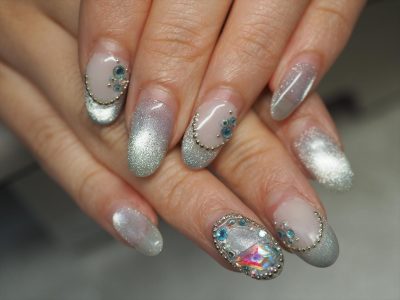 幻想的な雰囲気を、マグネットジェルのフレンチで引き立てます。