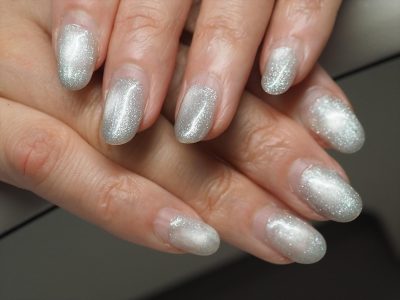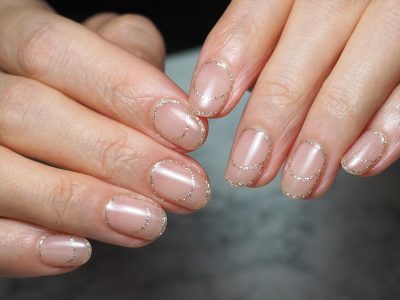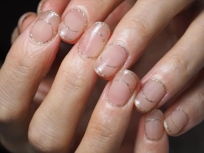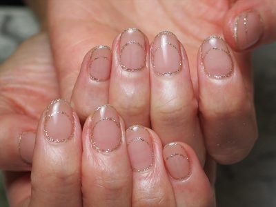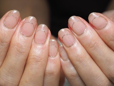 まるでフレンチネイルをしているかのような、ラメラインだけでフレンチネイルを再現している感じです。