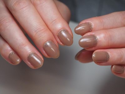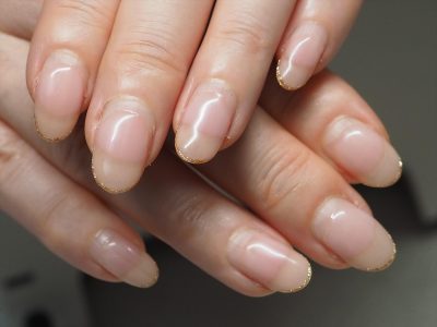 お爪の根元には、控えめなベージュのフラッシュジェルをON★