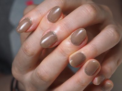 マグネットジェルでベースカラーを華やかにして、爪先を贅沢にオーロラに輝くラメフレンチに☆