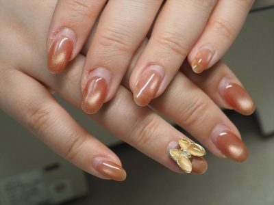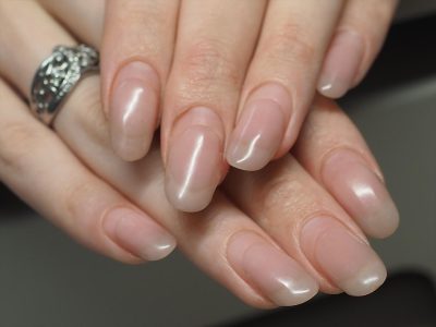 お爪に亀裂が数か所あるため、本日はシンプルに?! フラッシュジェルのワンカラー仕上げ
