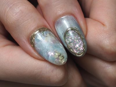 フラッシュジェルをアシメに2色使用して、少しでも気分UP!
