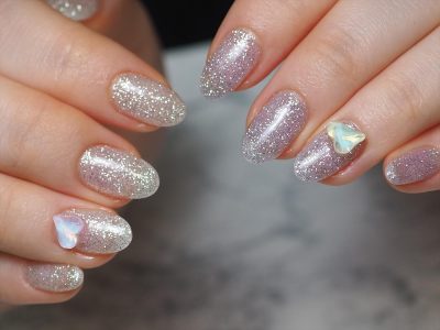 小ぶりのパステル・ハートビジューがちょこんと乗って可愛いデス♡♡♡