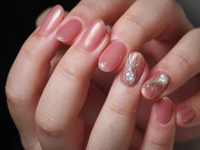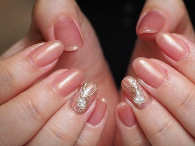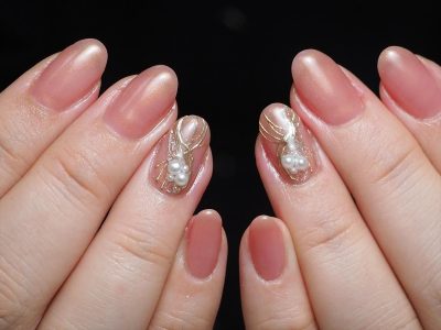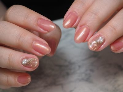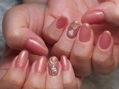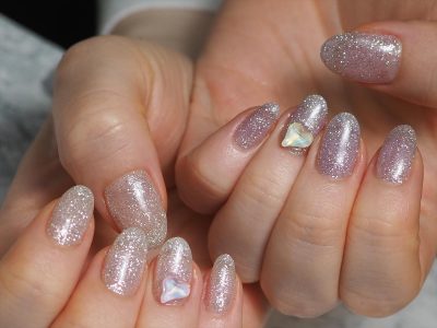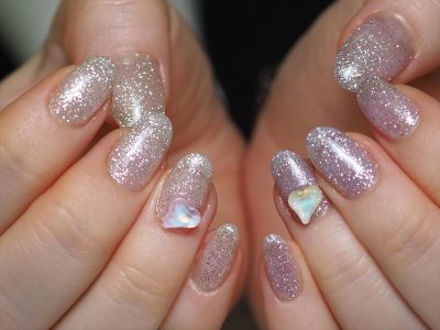 微粒子パールが入った可愛いピンクカラーで、愛されオフィスネイル♥